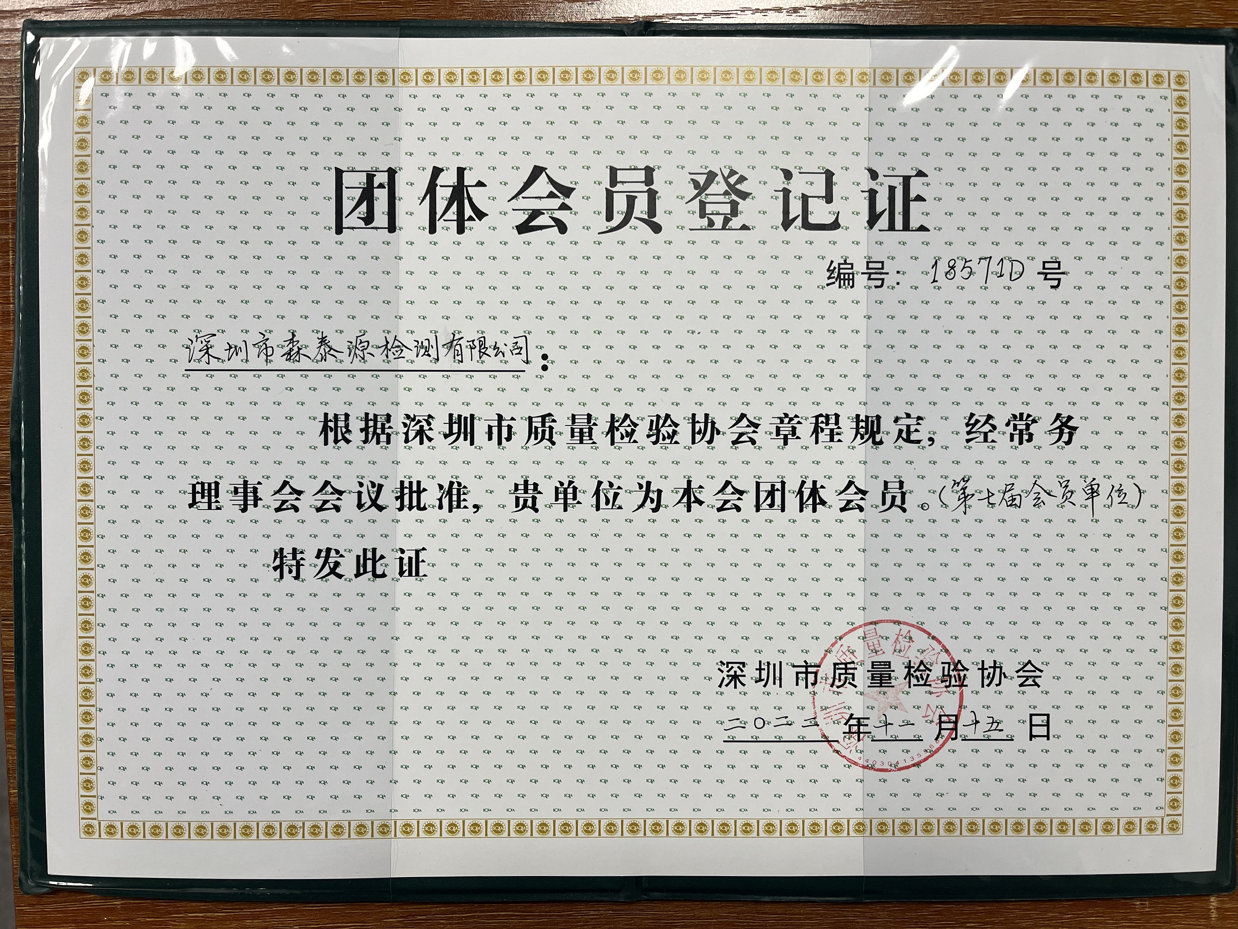深圳質(zhì)量檢驗(yàn)協(xié)會(huì)登記證