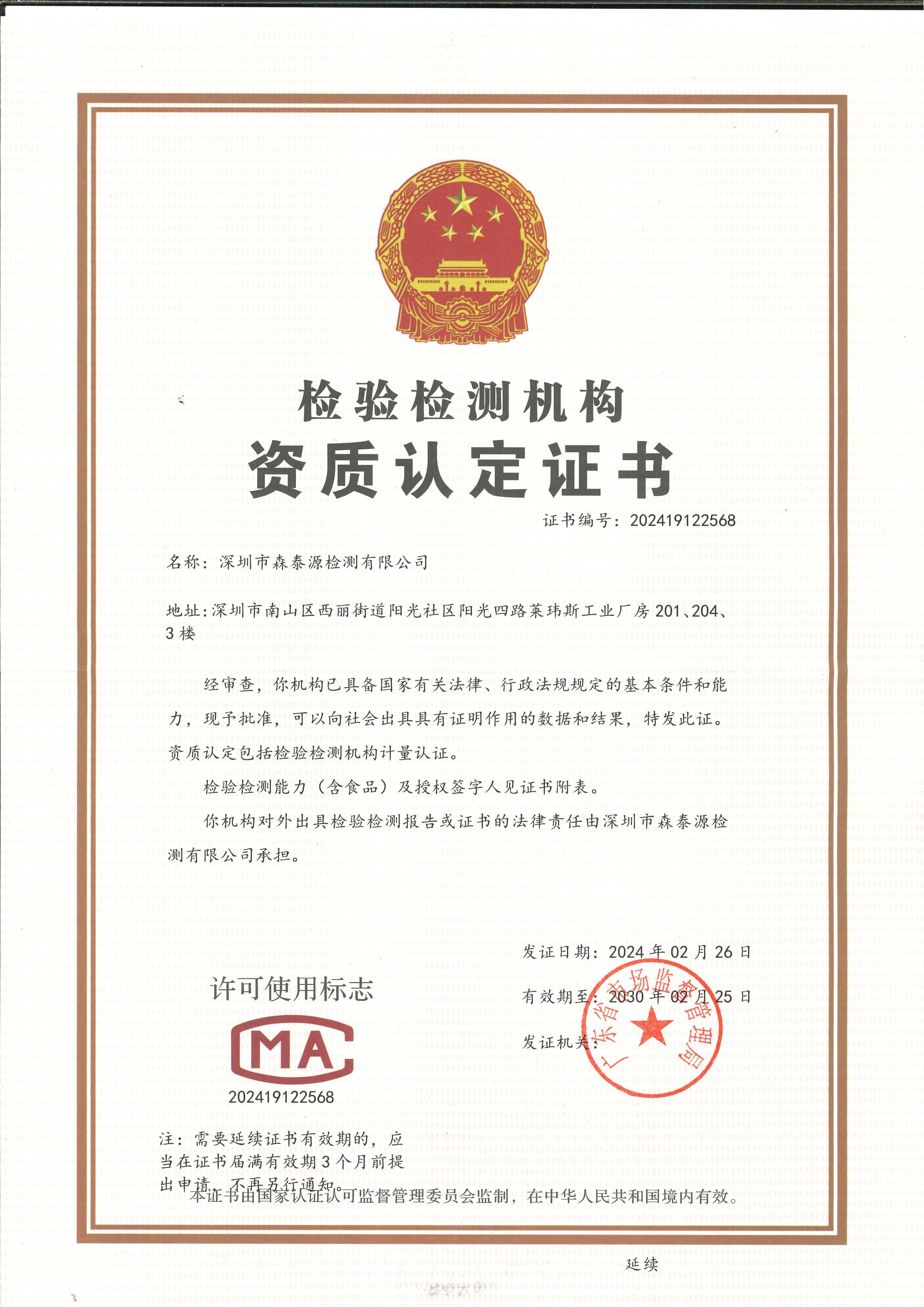 檢測(cè)CMA資質(zhì)證書